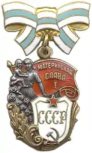 | Agraciamento | Cidadãs soviéticas com seis filhos ou mais |