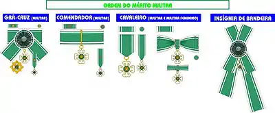 Ordem do Mérito Militar é uma condecoração criada para galardoar militares, civis e instituições, nacionais ou estrangeiros, que tenham prestado serviços relevantes à nação brasileira, especialmente ao Exército Brasileiro. Seu desenho faz referência à antiga Imperial Ordem de São Bento de Avis, também destinada a militares.