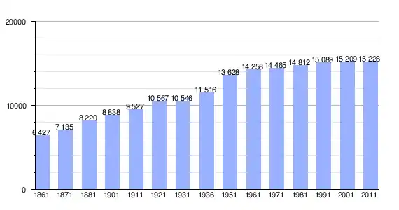 | Variação demográfica do município entre 1861 e 2011[3] |