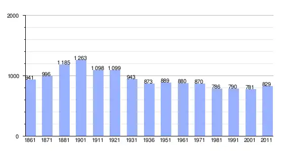 | Variação demográfica do município entre 1861 e 2011[3] |