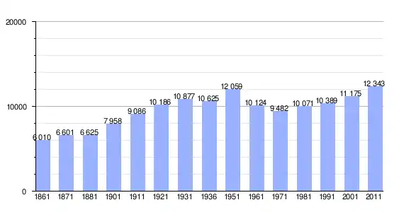 | Variação demográfica do município entre 1861 e 2011[3] |
