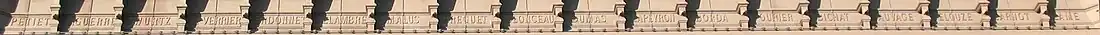 | 26 | De Dion | Henri de Dion | engenheiro | Trabalhou na construção da ponte de Langon e na restauração da Catedral de Bayeux. Construiu diversas pontes de ferro na Espanha, a Estação de Trem de Delicias em Madrid e uma fábrica de açúcar em Guadalupe. Foi professor de estática na Ecole Centrale d´Architecture. Gustave Eiffel foi um de seus alunos. |