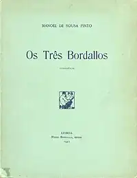 Os três Bordalos : conferência da autoria de Manuel de Sousa Pinto foi publicado em Lisboa, no ano de 1921, editado por Pedro Bordalo, com um total de 39 páginas. Indica o título que esta obra procura tratar as três individualidades de apelido Bordalo: Manuel Maria Bordalo Pinheiro, Rafael Bordalo Pinheiro e Manuel Gustavo Bordalo Pinheiro (respetivamente avô, filho e neto). Pertence à rede de Bibliotecas municipais de Lisboa e é considerado uma "raridade bibliográfica".[1]
