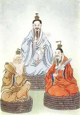 Daode Tianzun (道德天尊, "senhor do caminho e sua virtude" ou "honrado senhor do tao e da virtude"), também conhecido como o "Grande Puro" (chinês: 太清; pinyin: Tàiqīng) ou o "Maior Senhor Ancião" (太上老君, Taishang Laojun).