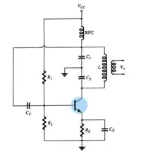 Sua frequência de ressonância pode ser calculada da mesma maneira do Colpitts usando TBJ.