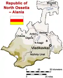 ![]() Localização da Ossétia do Norte-Alânia na Rússia. | ||||