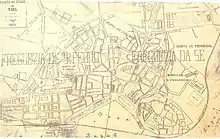 Com os Romanos a cidade perde o carácter de entreposto comercial e transforma-se em urbe. A Vila-a-Dentro estrutura-se segundo dois eixos principais (actuais Ruas do Município e do Repouso), ambos de acesso a uma área central, o fórum, onde se implantavam os edifícios administrativos e religiosos mais importantes. De entre eles salienta-se o templo (em latim: templum), cuja localização coincidia, parcialmente, com a da actual Sé, se bem que a uma cota cerca de três metros abaixo.[carece de fontes] A Vila-a-Dentro ocupava então uma área inferior àquela que hoje ocupa e teria sido muralhada sobre o traçado da actual circular interior (Ruas Monsenhor Boto, Rasquinho e antiga Travessa das Freiras).[carece de fontes] Pouco a pouco a cidade desenvolve-se e salta para o exterior das muralhas, estabelecendo-se então dois núcleos extramuros: o primeiro, na zona do Lethes-Alagoa-Artistas, acompanhando o traçado dos canais; o segundo, de estrutura linear, sobre o traçado da actual Rua Conselheiro Bivar.[carece de fontes] Envolvendo estes núcleos constituiu-se uma vasta zona de construção dispersa, onde se situavam as hortas que abasteciam a cidade, e hoje são descobertos inúmeros vestígios de edificações, estatuária, utensílios vários e túmulos um pouco por toda esta área .[carece de fontes]