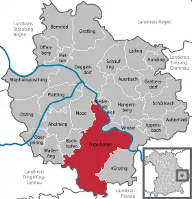 | Localização de Osterhofen no distrito de Deggendorf | |