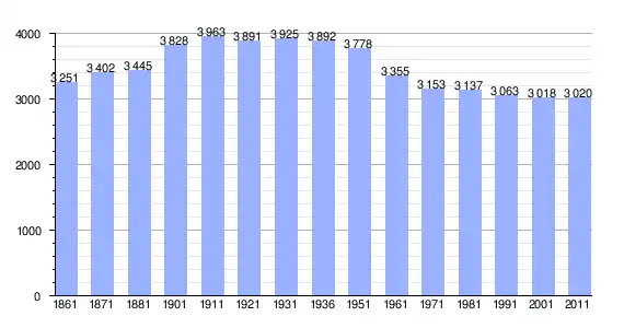 | Variação demográfica do município entre 1861 e 2011[3] |