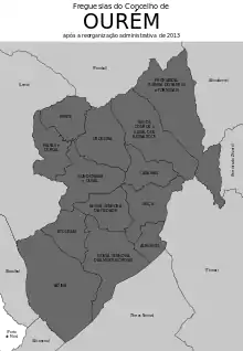 O município de Ourém está dividido em 13 freguesias:[2]