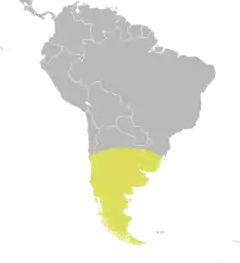 É encontrada no Chile e Argentina, migrando no inverno para o sul do Brasil e Paraguai. Passa a maior parte do tempo na água e raramente voa.