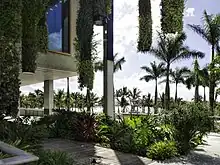 Com seus terraços elevados e envolventes e amplas copas pendentes, as estruturas são concebidas para resistir a furacões e inundações, ao mesmo tempo que proporcionam ampla sombra e ventilação. O museu também incorpora uma série de jardins verticais suspensos feitos de plantas e vegetação local, projetados pelo botânico francês Patrick Blanc.[15] Blanc fez experiências com diferentes tipos de espécies ao longo dos anos e os jardins agora incluem 80 tipos de plantas que supostamente sobreviveriam ao calor subtropical e também aos furacões. Segundo Christine Binswanger, arquiteta do projeto, as plantas proporcionam uma transição para os visitantes que entram no museu pelo ar livre.[16] O novo edifício do PAMM foi inaugurado em dezembro de 2013, e o edifício do Miami Science Museum foi inaugurado em maio de 2017.[17]