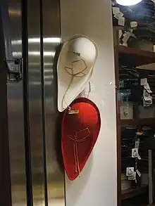 Frequentemente tinha sua ponta redobrada, formando uma espécie de aba, um bordo largo, especialmente no itálico. A extremidade do cone tinha o formato arredondado.