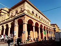 Estão localizados no distrito Santo Stefano, entre as praças Verdi e Puntoni, incluindo o Teatro Municipal e Palazzo Poggi. Os pórticos foram construídos no século XVIII, e desde sua construção, possuem função acadêmica. O pórtico do Teatro Municipal é composto de 12 arcos apoiados em colunas dóricas; e os pórticos do Palazzo Poggi possuem colunas dóricas com capitel em roseta, intercaladas por pilares.[1]
