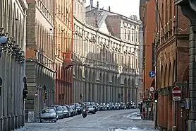 Em meados do século XIX, toda a Europa passou por uma remodelação urbanística, devido as regulamentações de higiene. Houve diversas demolições para a construção de espaços verdes e melhorias dos sistemas rodoviários. Bolonha também passou por essa remodelação, mas os pórticos continuaram a ser construídos, priorizando as funções comerciais.[1]