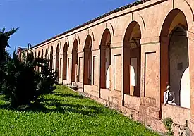 Está localizado no distrito de Porto-Saragozza, no edifício do Museo de Arte Moderna e Contemporânea de Bolonha. O pórtico possui uma composição simétrica, iniciando com 6 trabeações, seguindo com 1 grande arco, mais 3 trabeações, 1 arco grande e finalizando com 6 trabeações. As trabeações possuem arcos que são suportadas por pilares retangulares com falsa cantaria, apoiados sobre pedestais altos.[1]