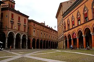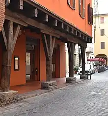 Em Bolonha, o primeiro indício de uma residência com pórtico foi no ano de 1041, construído em uma pequena casa na via Emilia (atual via Maggiore).[1][5]