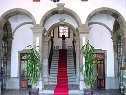 No átrio superior destacam-se um valioso tapete de Arraiolos e uma mesa de bufete em madeira de pau santo dos finais do século XVIII.