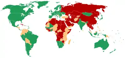 A Freedom House dos Estados Unidos publicou relatórios sobre o "estado da liberdade no mundo" com os países classificados como, países livres, países parcialmente livres ou não livres. Em 2008 há 90, 60 e 43 respectivamente.