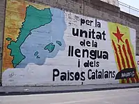 Mural em Argentona, Catalunha, que reclama a "unidade da língua e dos Países Catalães."