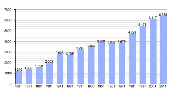 | Variação demográfica do município entre 1861 e 2011[3] |