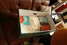 - Peachman, Rachel Rabkin (24 de Maio de 2017). «Put Your Baby in a Box? Experts Advise Caution» (em inglês). New York Times. Consultado em 5 de Agosto de 2018