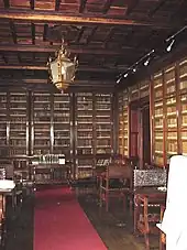 Para o espaçoso átrio do rés-do-chão abrem-se, à direita e à esquerda, as portas das salas de leitura, a primeira das quais destinada a leitura geral e consulta de publicações periódicas, e a que fica do lado oposto, para consulta de manuscritos e espécies pertencentes à Secção de Reservados. Esta possui o respectivo mobiliário e estantes em madeiras do Brasil, ao gosto das antigas livrarias do século XVII, em que toda a área aproveitável das paredes era inteiramente recoberta de estantes ou armaretes.