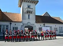 SOBRE O UNIFORME: Adhemar de Barros em uma viagem ao Canadá na década de 60, ficou encantado com a guarda canadense, a famosa Real Polícia Montada do Canadá. Então pediu uma autorização ao governo canadense para que pudesse utilizar o mesmo uniforme (com algumas modificações) de uso exclusivamente para cavalaria do Palácio Boa Vista. O Governo canadense concedeu o pedido, e desde 1964 a polícia do Boa Vista utilizasse do uniforme icônico. O azul do uniforme remete aos lanceiros da polícia montada, e o vermelho representa o estado de São Paulo. O uniforme é composto por um chapéu gola, culote e punhos vermelhos, dólmã azul, cinto e luvas brancas, botas pretas e esporas cromadas.
