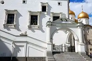 Um outro detalhe marcante do palácio é a escadaria exterior da fachada sul, a qual está decorada com esculturas de leões estilizados e possui na parte inferior dois portais decorativos, com arcos de volta perfeita, dispostos perpendicularmente. Esta estrutura sempre foi a entrada de cerimónia do palácio, sendo também conhecida como Belo Terraço (Красное крыльцо). Durante a realização dos grandes eventos (como as coroações dos czares e imperadores), os czares apareciam aqui, após a obrigatória liturgia, acompanhados pelo líder da vizinha Catedral da Dormição de Maria, para ser aplaudidos pelo povo. Contudo, esta varanda serviu como local de eventos menos notáveis: assim, durante a primeira insurreição Streltsy, no ano de 1682, impopulares boiardos foram aqui assassinados pelos rebeldes, sendo empalados vivos. Na época da União Soviética, o Belo Terraço desapareceu durante várias décadas, sendo construída uma cantina no seu lugar durante a década de 1930. Em 1994, ess cantina foi removida e o Belo Terraço restaurado com a sua escadaria.