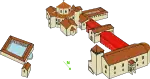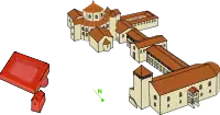 - Um vestíbulo com duas escadas de caracol aos lados, em forma de pequenas torres