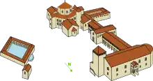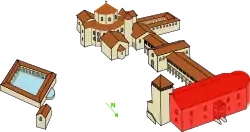 A capela palatina encontrava-se ao outro lado do complexo palatino, para sul. Estava unida à aula regia por meio de uma galeria de alvenaria.