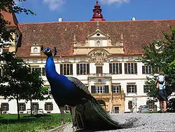 Como este edifício já não podia atender as exigências da nova família principesca, começaram em 1625 renovações fundamentais. Durante a Guerra dos Trinta Anos, João Ulrico de Eguemberga, o jovem primo do General Ruprecht de Eguemberga, conduziu, como um soberbo diplomata e estadista, a política externa do seu imperador, Fernando II,[6][7] enquanto o seu homólogo e adversário político, o Cardeal Richelieu, guiava a do rei Luís XIII de França.[8][9] Como chanceler[10] e confidente pessoal próximo de Fernando II, João Henrique desejou uma grandiosa residência representativa do seu novo estatuto e autoridade quando foi nomeado "Gubernator" (Governador) da Áustria Interior, depois do imperador escolher Viena como sua capital imperial.[11] As partes mais antigas já existentes foram habilmente integradas no novo edifício. A sede da família não foi completamente destruída, por um lado, provavelmente devido ao elevado custo dos materiais de construção e, ao mesmo tempo, por um desejo manifesto. A capela gótica de Santa Maria manteve-se inalterada, sendo mesmo designada como ponto central da nova disposição.
