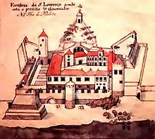 A Fortaleza Velha passou a sediar a força castelhana permanente que guarneceu a ilha, passando o seu paço a abrigar o Governador Militar, D. Agostinho de Herrera, conde de Lanzarote, substituído em 1582 pelo Capitão Juan de Aranda. As obras da fortaleza foram concluídas neste período, sob a direção do mestre de obras reais, Jerónimo Jorge, compreendendo a edificação do baluarte central Norte, semi-pentagonal, no início do século XVII, guarnecendo o Portão de Armas, sob a invocação de São Lourenço. Posteriormente, a imagem - com a data de 1636 (1639?) na sua base - seria colocada num nicho sobre o Portão de Armas -, passando a fortaleza a denominar-se "de São Lourenço" e o baluarte de "do Castanheiro", dada a árvore que veio a crescer na sua esplanada.