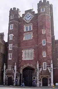 O palácio foi construído em 1530 por Henrique VIII, no terreno do antigo hospital para leprosos dedicado a Saint James (do qual o palácio e o parque vizinho tomaram o nome); o hospital foi dispensado em 1532. O novo palácio, secundário em relação ao interesse que Henrique VIII dispensava ao Palácio de Whitehall, foi construído em estilo Tudor com tijolos avermelhados, em volta de quatro pátios: a sua portaria sobrevive na face Norte, flanqueada por torretas poligonais.