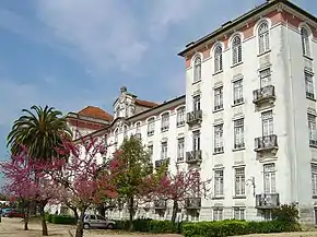 O gosto do arquitecto pelas composições assimétricas, encontra-se patente nos dois torreões da fachada principal, que apresentam volumetrias diferentes. Mas esta característica pode relacionar-se também com a necessidade de articulação com os blocos preexistentes.