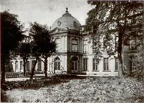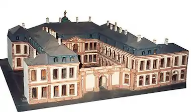 O Corps de Logis, o edifício principal do palácio, fecha o lado leste do pátio de honra. A sua fachada ocidental, voltada para o pátio de honra, era rigorosamente simétrica, com um corpo central que se projectava da fachada e se elevava pelos dois andares, sendo flanqueado por três eixos de janelas de cada lado. O friso dividia a fachada horizontalmente, de forma que o piso superior com o telhado amansardado parecia formar um edifício separado.