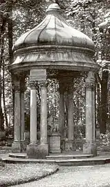 Em 1895, o muro do jardim foi derrubado pela administração postal, de forma a criar espaço para um edifício que serviu de garagem às carruagens dos correios. Além disso, o portal fingido que se situava por trás do antigo templo foi trasportado para o pátio dos Neuen Hauptpost (Novos Correios Principais), onde foi reconstruido.
