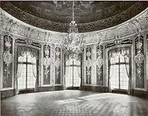 O pavimento e o plinto da Sala do Jardim foram ricamente decorados com mármores vermelhos e pretos. Os pilares com os seus capitéis jónicos e a cornija circular eram constituídos por estuque branco e verde. Todas as decorações desta sala, incluindo os remates das portas pintados em grisaille por Christian Georg Schütz no ano de 1770, foram levadas em 1892 para Ratisbona, de forma que a parede nua e os estuques em nada lembravam os ricos equipamentos anteriores. O estuque do tecto foi destruído em 1924, quando o pavimento da sala da cúpula, que lhe ficava directamene acima, foi reforçado.