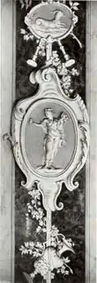 As paredes foram divididas em doze lesenas de largura igual, entre as quais estava uma janela, uma porta ou uma lareira. As lesenas eram feitas de stucco lustro azul-esverdeado, dobre o qual foram fixados cartuxos. Cada um dos cartuxos representava um dos doze deuses do Olimpo, sobre os quais se encontrava um escudo com um dos doze signos do Zodiaco, assim como atributos, de forma a se adequarem aos meses do ano.