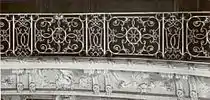 Para enfatizar a entrada do portal, o muro do pátio entre os dois pavilhões, com oito metros de altura, não foi construído a direito, ou seja, cada um dos lados era constituído por um curto pedaço de parede com um quarto de círculo, separado por pilastras. A totalidade do muro da concha tinha aproximadamente 26 metros de extensão, dos quais um terço correspondia ao portal. Sobrepujado por um arco redondo, o portão de entrada tinha três metros de largura, o que possibilitava a passagem mesmo das carrugens mais largas. O portão em madeira foi concebido pelo escultor parisiense Fressancourt. Em 1893, estas meias-portas foram transportadas para Ratisbona e substituídas por uma simples grade de ferro forjado. As portas foram desenhadas com a proporção áurea. Apresenta um segmento de friso arqueado que divide dois campos esculpidos, contendo de cima para baixo e no total os números de Fibonacci 3:5:8.
