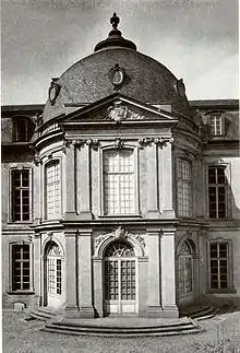 Para o edifício da cúpula, a chamada Rotunda, de Cotte idealizou uma delicada estrutura avançada com apenas 1,60 metros de profundidade, criando uma forma oval e uma frente paralela à fachada da ala. Enquanto no piso térreo dois pares de pilastras toscanas planas ladeiam a larga entrada sob o friso, no primeiro andar erguem-se dois pares de pilastras jónicas. O centro do frontão estava decorado por um cartucho com as iniciais do Príncipe Anselm Franz. A transição da Rotunda para o telhado em lousa da cúpula era feito por uma balaustrada de pedra, em cujos cantos internos se erguiam dois vasos do mesmo material. A própria empena da fachada estava inicialmente deocrada por dois vasos de pedra, mas, em 1880, estes estava de tal forma corroídos que foram sumariamente removidos. O anel superior do telhado da cúpula também estava coroado por um vaso feito em cobre, e não em pedra, por questões relacionadas com o peso. A cúpula, apesar dos seus oitop metros de altura, apresentava um aspecto delicado.