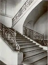 A Escadaria ficava a norte do Vestíbulo, elevando-se através de dois lanços. Uma escada em arenito conduzia ao primeiro andar. A altura dos degraus era de 14 centímetros (meio sapato), relativamente baixos, pelo que se tornava fácil de subir. Com uma altura total correspondente aos 5,60 metros do piso térreo, tinha 18 degraus até ao primeiro patamar e mais 20 daqui até à antecâmara da Sala da Cúpula.