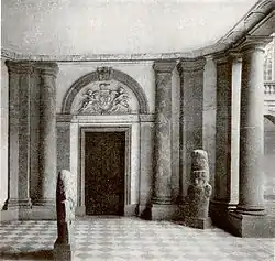 Por trás do portal abria-se o grande pátio interior do palácio, um cour d’honneur (pátio de honra) com 30 metros de lado. Os edifícios que constituíam as alas norte e sul eram ladeados por arcadas, entre as quais restava uma área de 22 metros de largura – suficientemente espaçosa para lidar com várias equipagens de dois cavalos ou uma de quatro. Vindo do portal, passa-se por um vestíbulo colunado formado por quatro colunas toscanas emparelhadas. Os andares superiores das alas laterais correspondem às arcadas do piso térreo. É possível que no início estivesse prevista, igualmente, a sua abertura, porém, ao longo do período de construção acabaram por receber janelas.