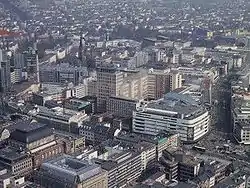 Na área do antigo jardim e do corps de logis, o edifício central do palácio demolido em 1951, ergueu-se, entre 1952 e 2003, a Fernmeldehochhaus (Torre de Telecomunicações), um arranha-céus com mais de 70 metros de altura. Este edifício foi um dos primeiros arranha-céus em armação de aço construídos em Frankfurt e serviu como plataforma central da rede de telecomunicações alemã. A sul e a leste ficavam situados dois edifícios administrativos com 33 e 40 metros de altura. Naquele espaço chegaram a trabalhar, na década de 1960, até 5.000 pessoas.