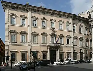 A ala de frente para a Via di S. Stefano del Cacco, foi construída por volta de 1734[3] por Alessandro Speroni, que construiu uma série de reentrâncias baixas para entrada de carroças[2]. Entre 1773 e 1775, Clemente Orlandi também trabalhou no palácio[3].
