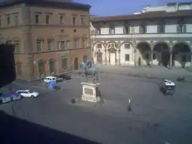 No local onde se ergue o Palazzo Budini Gattai existiam alguns terrenos que pertenciam, desde 1250, à Ordem dos Servos de Maria, domiciliados na Basilica della Santissima Annunziata situada em frente. Aqui, já era realizada antigamente a "Festa della Rificolona", na qual se homenageava Nossa Senhora com uma lanterna acesa amarrada a uma cana, e os festejos pela Anunciação que tinham lugar pelo Ano Novo florentino (capodanno fiorentino), o dia 25 de Março.