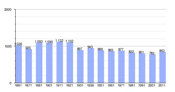 | Variação demográfica do município entre 1861 e 2011[3] |