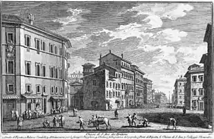 A fachada principal do Palazzo Cardelli fica de frente para a homônima Piazza Cardelli, situada entre a Via della Scrofa a Via di Pallacorda, onde está, no número 4, um belo portal. Em 1516, o secretário apostólico Jacopo Cardelli da Imola, um amigo do cardeal Raffaele Riario, sobrinho do papa Sisto V e secretário do papa Leão X[2], adquiriu um complexo de casas e terrenos nesta região do Campo de Marte e, depois de demolir tudo, contratou a obra provavelmente do arquiteto Pierino de Gennaris da Caravaggio para que fossem construídos dois palácios, o conhecido como "Domus Magna" (o atual Palazzo Cardelli) e um outro utilizado para funções oficiais, ou seja, uma casa anexa para realização de festas e banquetes chamada "Palatium" (que, mais tarde, passou a ser denominado Palazzo di Firenze)[3].