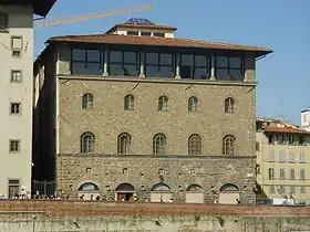 Interessante é a galeria no último piso com vista para o Arno, hoje tapada com vidraças