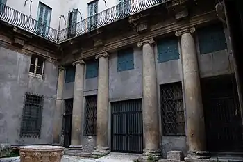 O palácio é a única obra palladiana na cidade Verona, sendo a sua datação incerta (a maior parte dos estudiosos colocam o início da construção em 1555); igualmente imperfeito é o conhecimento da real consistência do edifício,só parcialmente realizado e, portanto, reconstituível unicamente através da tábua de I Quattro Libri dell'Architettura de Palladio, neste caso particularmente inacabada. O já referido bombardeamento aliado de 1945 comprometeu, posteriormente a situação, levando à demolição de grande parte do que tinha sido construído.